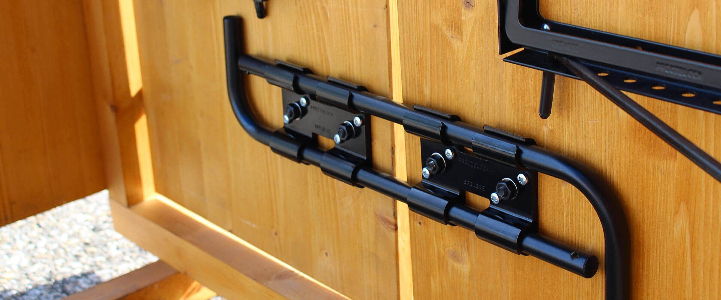 Composé de 2 barres insérées dans de larges et épaisses glissières, cet ensemble rigidifie de façon très impressionnante les 2 vantaux d’un volet ainsi couplés entre eux.